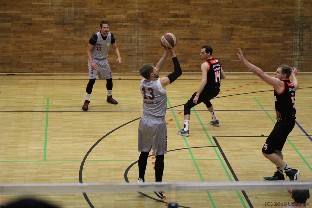 In der Schlußphase treffen die Hausherren einige Male aus der Distanz, UEG bringt aber Ruhe in das Spiel, nimmt bei jedem Angriff viel Zeit von der Uhr und lässt sich den Sieg nicht mehr nehmen. Am Ende kann UEG mit einem sicheren 10 Punkte Sieg die Heimreise antreten. Endstand 59:69 (19:31).