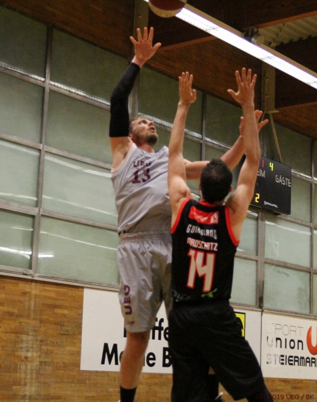 Der zweite Abschnitt beginnt für UEG etwas erfreulicher, man kann mit etwas besserer Defensive den Rückstand sukzessive verkleinern und zwei Minuten vor der Pause sogar in Führung gehen. Aber mit einer unkonzentrierten Schlußphase schickt man die Hausherren mehrmals an die Freiwurflinie, die mit guter Trefferquote wieder einen sechs-Punkte Vorsprung herausspielen.