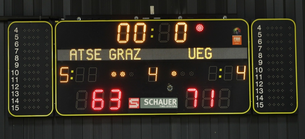 Das Spiel blieb über die gesamte Distanz spannen – keine der Mannschaften konnte sich absetzen. Legte eine Mannschaft vor, konnten die Gegner nachziehen. Die Intensität im Spiel war auf beiden Seiten hoch – die Trefferquote jedoch bescheiden – das resultierte in einem geringen Gesamtscore auf beiden Seiten. Mitte der dritten Viertels lag UEG kurzzeitig mit 9 Punkten in Führung – Die Hausherren konnten auber auch diesmal kontern und gingen kurzzeitig sogar in Führung. Nach 3 Minuten im Schlußabschnitt war die Partie wieder ausgeglichen. UEG konnte in der Phase einige wichtige Punkte unter dem Korb erzielen – blieb in der Defensve aber erfolgreich und konnte sich einen kleinen Vorsprung herausspielen. Der sollte biis zum Schluß auch verteidigt werden – und UEG konnte mit einem 57:60 (30:26) dem ATSE Graz I die erste Niederlage zufügen.