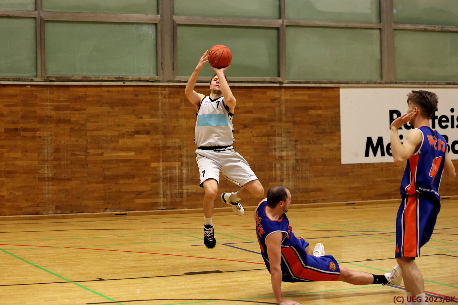 Das ganze Spiel verläuft sehr langsam. UEG kommt in der ersten Hälfte kaum in die Gänge und tut sich lange schwer mit den Gegnern. Immer wieder werden zu viele offene Würfe erlaubt und die Hausherren können mehrere Distanzwürfe verwerten. In der Offensive spielt man solide, exekutiert aber zu wenig kaltschnäuzig oder unkonzentriert. Damit bleibt das Spiel lange ausgeglichen und man geht mit einem Unentschieden in die Pause.
